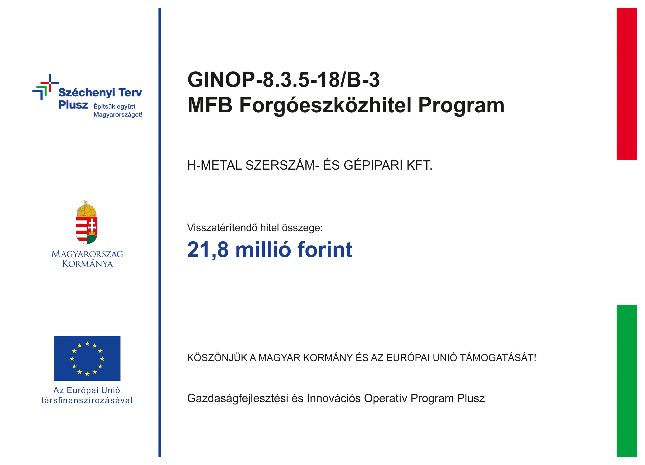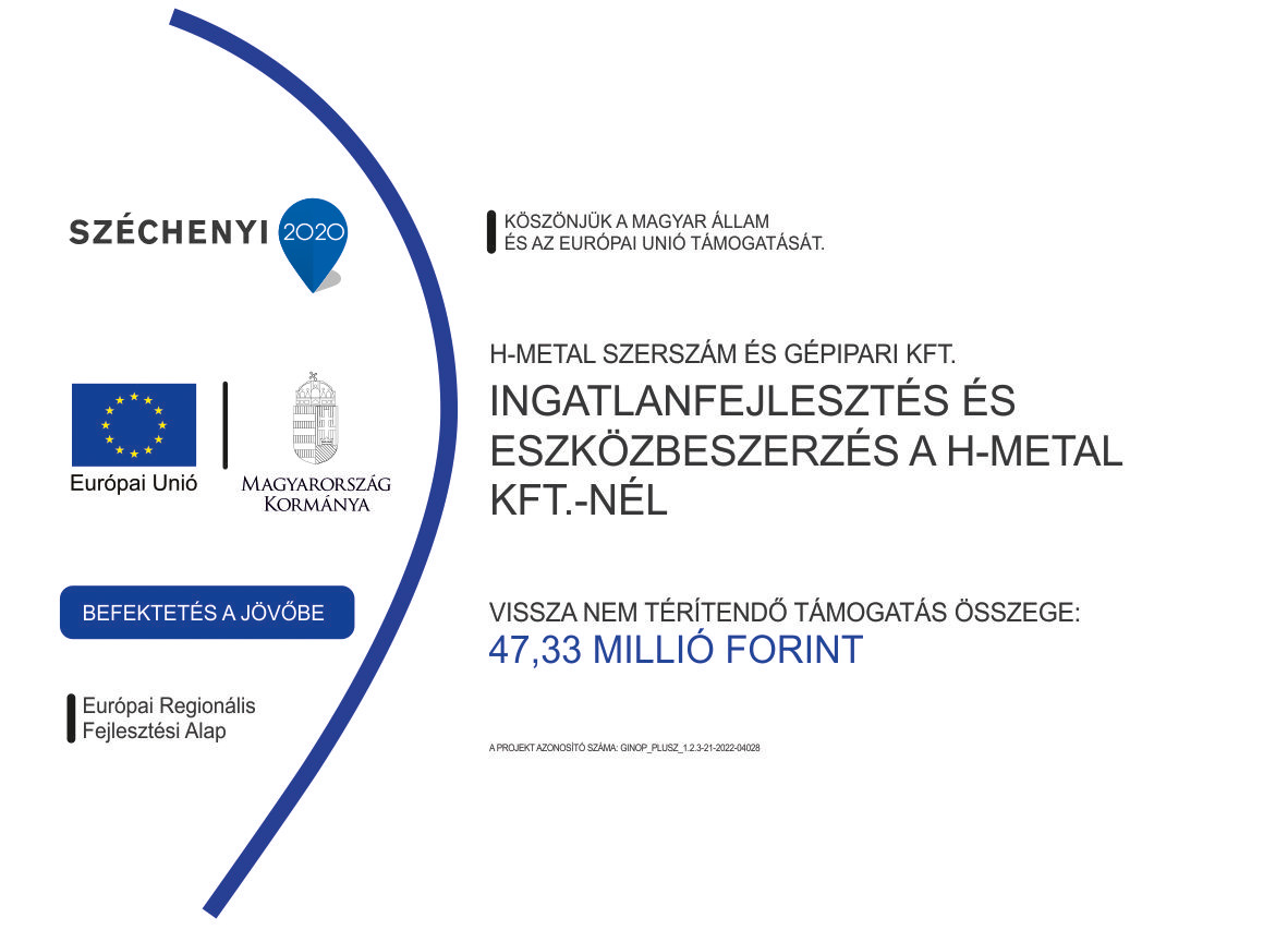 Az Európai Regionális Fejlesztési Alap és a Magyar Állam a H-METAL Kft beruházásához nyújtott támogatásának összege: 47 334 527, - Ft